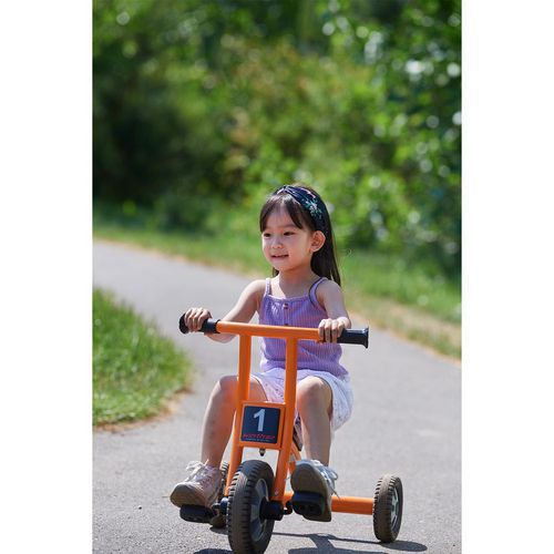 Poignées en caoutchouc . Blocage du guidon sans risque pour les doigts. Manivelle de pédale en acier renforcé. Roue caoutchouc pleine très robuste et souple.
