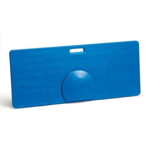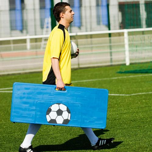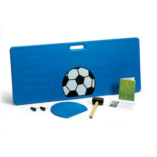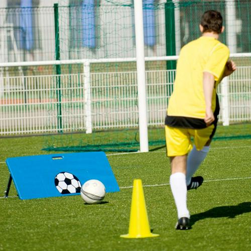 Planche à rebond composée de deux parties : une partie plane d'une inclinaison variable : 90, 105 et 125 degrés, et d'une partie sphérique et amovible qui permet de modifier de façon aléatoire le rebond du ballon.