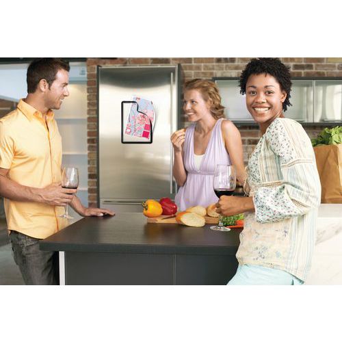 - Dos entièrement magnétique pour afficher sans outils sur toutes les surfaces métalliques.