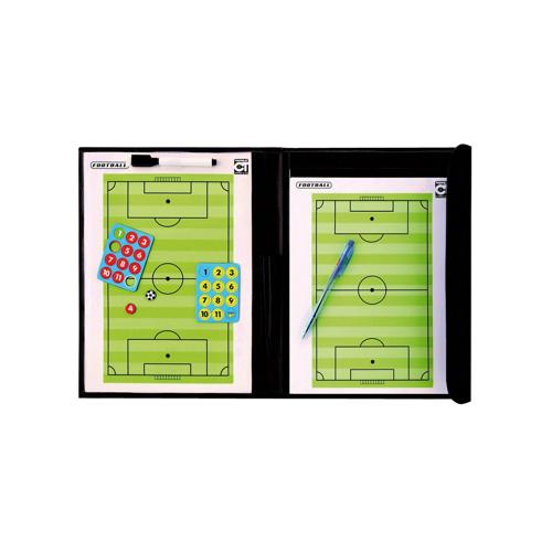 Pochette de coach avec à l'intérieure une face avec côté magnétique et effaçable + un bloc de feuillets avec terrain de l'autre côté.
