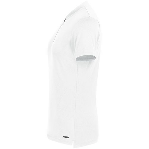 Polo de sport femme Pro Casual Jako Fermeture éclair avec marquage JAKO Couture latérale Schlitz Soft touch Les fibres microfines évacuent directement l'humidité à la surface du tissu Les matériaux utilisés sont composés à au moins 50 % de polyester recyclé Coloris : blanc