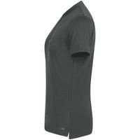 Polo de sport femme Pro Casual Jako Fermeture éclair avec marquage JAKO Couture latérale Schlitz Soft touch Les fibres microfines évacuent directement l'humidité à la surface du tissu Les matériaux utilisés sont composés à au moins 50 % de polyester recyclé Coloris : gris