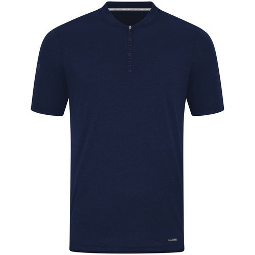 Polo de sport Pro Casual Jako Fermeture éclair avec marquage JAKO Couture latérale Schlitz Soft touch Les fibres microfines évacuent directement l'humidité à la surface du tissu Les matériaux utilisés sont composés à au moins 50 % de polyester recyclé Coloris : Bleu foncé