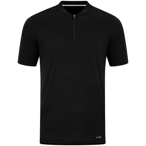 Polo de sport Pro Casual Jako Fermeture éclair avec marquage JAKO Couture latérale Schlitz Soft touch Les fibres microfines évacuent directement l'humidité à la surface du tissu Les matériaux utilisés sont composés à au moins 50 % de polyester recyclé Coloris : noir