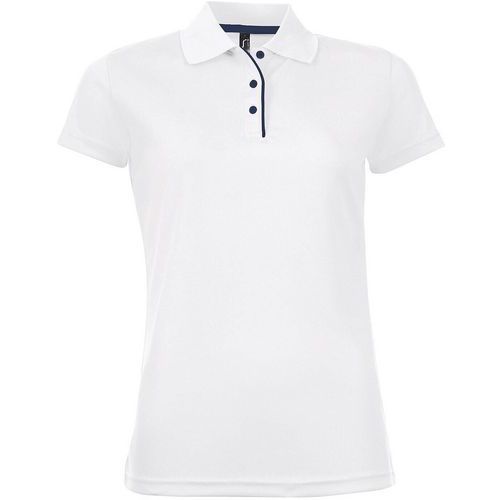 Polo multitech respirant : matière légère à séchage rapide. Double surpiqûres pour garantir une solidité optimale des coutures. Encolure bicolore et fentes latérales bicolore pour plus de confort. Col chemisier 3 boutons avec patte bicolore. Modèle féminin avec coupe féminine cintrée.