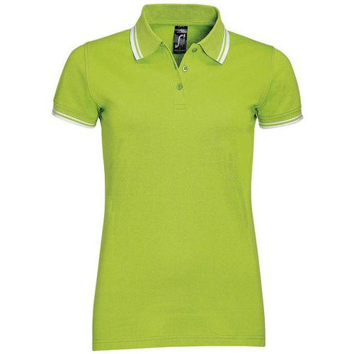 Polo manches courtes femme, style classique et chic, de couleur lime/blanc, idéal pour le quotidien ou...