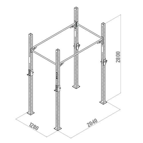 Le rack Cotis I noir est un rack plein parfait pour travailler à plusieurs sur des exercices de gymnastique sur ses barres de tractions ou postes à squat testé à 500kg. Fabriqué en France, ses dimensions sont de 2,8m en hauteur/1,96m en largeur et 1,2m en longueur. Il est en acier de qualité de forte épaisseur pour avoir de la robustesse. Il est composé de 4 pieds de 2.8m, de 2 barres de traction de 1m, de 2 barres de traction de 1m80, de 2 paires de support de barre, d'un lot de visserie et quincaillerie..