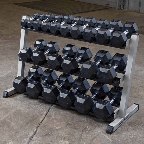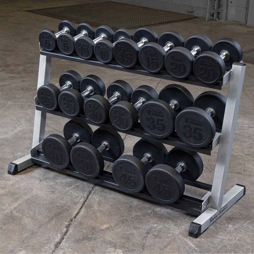 | Intitulé du produit | Range haltères 3 niveaux, Matériau: Acier, Longueur: 68.5 cm, Coloris: Noir/gris, Type: Range haltères |