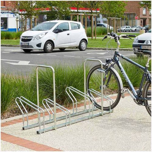 2 arceaux pour antivol Permet de cadenasser les vélos avec antivol en U Longueur : 4 places : 147cm 5 places : 192cm 6 places : 237cm 8 places : 329cm 10 places : 420cm