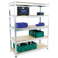 Rayonnage lourd Manutan Rapid 1, Tablette matériau: Aggloméré, Hauteur: 1980 mm, Nb de niveaux: 5 Rayonnage lourd Manutan Rapid 1, Tablette matériau: Aggloméré, Hauteur: 1980 mm, Nb de niveaux: 5