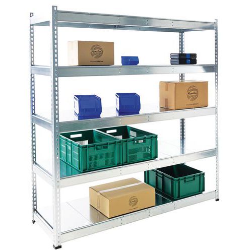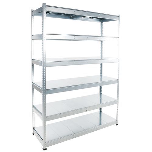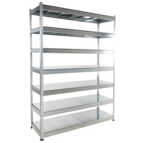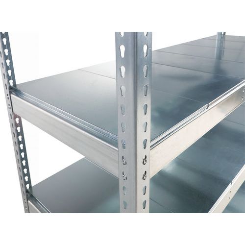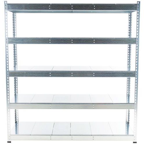 Rayonnage industriel simple et ultra-robuste pour stockage des marchandises de charge lourde. Tablette pleine acier parfaite pour l'entrepôt des pièces en vrac et/ou des produits graisseux. Finition zinguée pour zone humide ou peinture époxy gris/bleu pour environnement sec. Étagère d'entrepôt de montage facile, sans l'aide de techniciens et d'outils spécifiques.