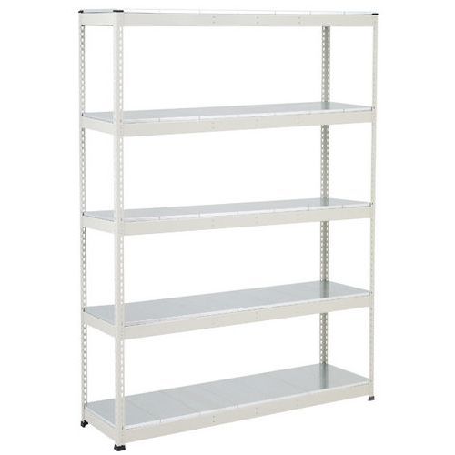 Rayonnage industriel simple et ultra-robuste pour stockage des marchandises de charge lourde. Tablette pleine acier parfaite pour l'entrepôt des pièces en vrac et/ou des produits graisseux. Finition zinguée pour zone humide ou peinture époxy gris/bleu pour environnement sec. Étagère d'entrepôt de montage facile, sans l'aide de techniciens et d'outils spécifiques.