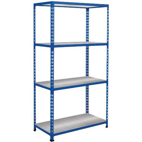 Rayonnage industriel simple et robuste pour stockage des marchandises de charge moyenne. Tablette pleine acier parfaite pour l'entrepôt de pièces en vrac et/ou de produits graisseux. Finition zinguée pour zone humide ou peinture époxy gris/bleu pour environnement sec. Étagère d'entrepôt de montage facile, sans l'aide de techniciens et d'outils spécifiques.