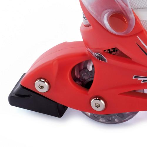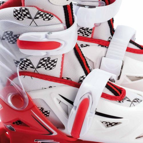 Le modèle en taille 28-32 ne possède que 3 roues mais il est possible de les positionner en in-line ou en version 2 roues arrière (type patin à roulettes) et une roue à l'avant (un peu comme un tricycle).
