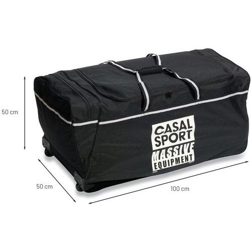 | Intitulé du produit | Sac à roulettes Massive équipement, Matériau: Nylon, Hauteur: 50 cm, Largeur: 50 cm, Longueurs: 100 cm |