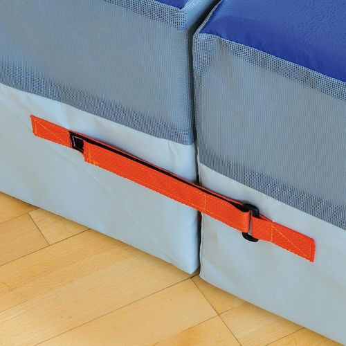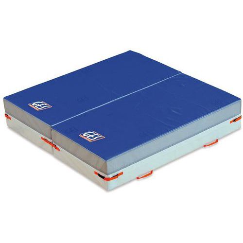 Matelas de réception en mousse de polyuréthane de densité 17 kg/m3. Housse en bâche vinyle 650 gr. grain de cuir très résistant avec une grille de décompression sur le pourtour pour une meilleure réception. Dessous antidérapant gris renforcé, fermeture à glissière et poignées de transport intégrées, pour une utilisation en toute sécurité. Modèle avec sangles d'associations qui permettent de réaliser des surfaces à la demande car très léger et très facile à transporter. Conforme aux normes NF EN 12503-1. Classé non feu M2. Sans phtalate. Fabriqué en France. Fabriqué en France Garantie client : 2 ans
