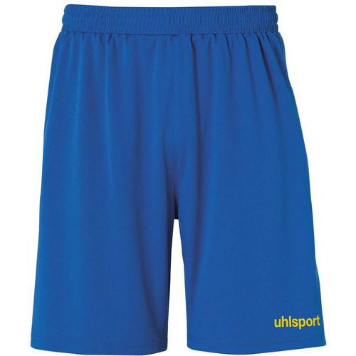 Short Uhlsport enfant, de couleur azur/jaune, très résistant, idéal pour les matchs et la compétition.