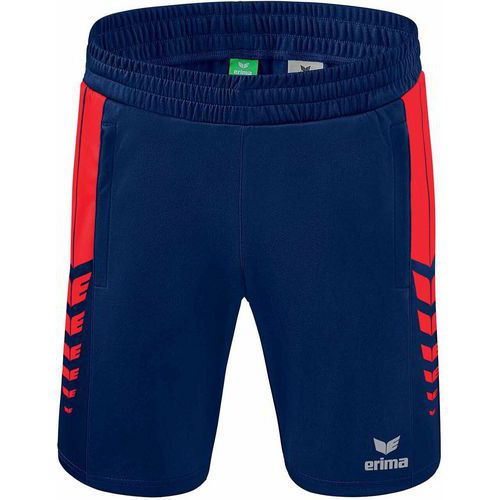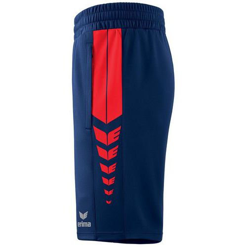 Short de sport Erima Worker Six Wings adulte, navy/rouge, idéal entraînement et loisirs.