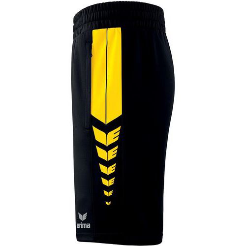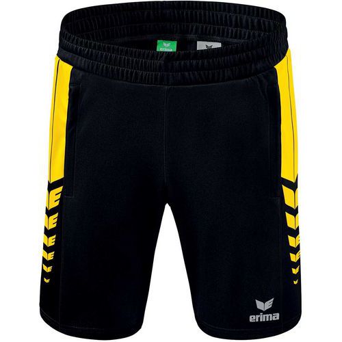 Short de sport Erima Worker Six Wings, noir/jaune, adulte, idéal pour entraînement et loisirs.