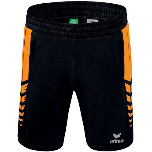 Short sportif Erima Worker Six Wings adulte, noir/orange, idéal pour l'entraînement et les loisirs.