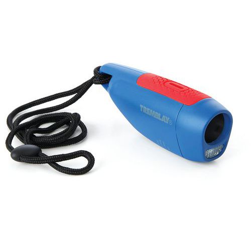 | Intitulé du produit | Sifflet électronique rechargeable, Matériau: PVC, Coloris: Bleu/rouge, Sifflet niveau sonore: Strident |