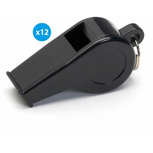 Sifflet plastique, Coloris: Noir, Modèle: Grand modèle - Lot de 12, Coloris détaillé: Noir