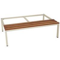 Socle-banc sur pieds pour vestiaire Manutan. Grand confort pour les usagers avec position assise. Entretien aisé : permet un accès facilité sous la structure. Socle-banc équipé de vérins de réglage pour parfaite stabilité.