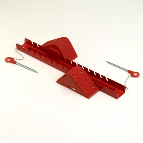 Livré avec pointes de fixations au sol et fiches pour utilisation sur piste cendrée.