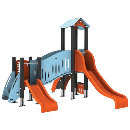 - Structure 2 tourelles dont 1 avec toit et planchers à 0 m55 et 0 m 90.
