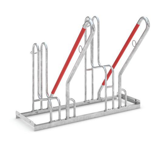 Support cycle modèle 4500 très pratique et peu encombrant. Offre aux vélos un espace de stationnement confortable et sûr. Equipé d’œillets en acier pour protéger les vélos contre tous risques de vol. Résistant aux intempéries. Finition galvanisée de qualité. Avec possibilité de stationnement sur un ou deux côtés. Fabriqué en UE