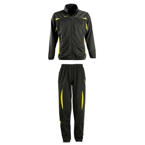 Ensemble 100% polyester brillant SOLDRY (tissu fonctionnel très résistant). Veste coupe droite avec empiècementsde couleurs en tissu respirant (pour une régulation optimal de la température et un meilleur confort) sur les côtés et sur les manches, 2 poches zippées, dos uni. Pantalon coupe classique, 2 poches zippées, ceinture élastique avec cordon de serrage, bas de jambes élastiqués et zippées. Tailles : S-M-L-XL-XXL-XXXL coloris : Noir/Jaune Minimum de commande : 5 pièces.
