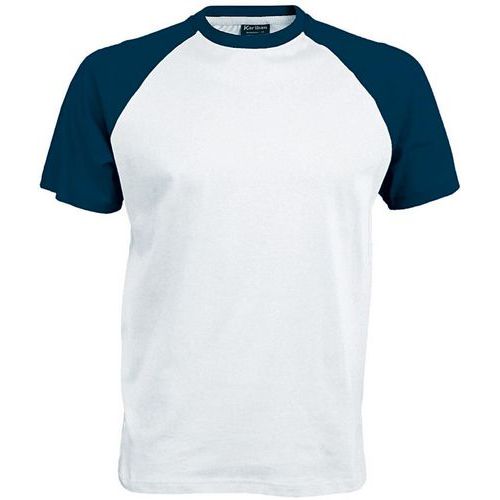 Tee-shirt avec manches raglans, de couleur blanc et marine, idéal pour le quotidien ou la pratique du rugby.