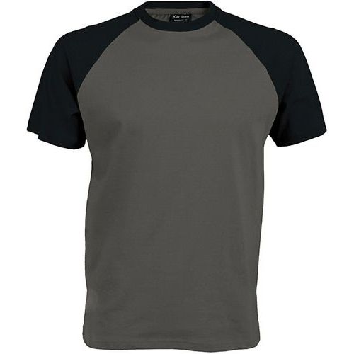 Tee-shirt avec manches raglans, de couleur gris et noir, idéal pour le quotidien ou la pratique du rugby.