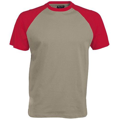 Tee-shirt avec manches raglans, de couleur gris et rouge, idéal pour le quotidien ou la pratique du rugby.