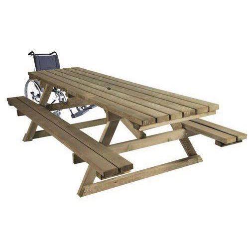 | Intitulé du produit | Table de pique-nique accès PMR, Matériau: Pin, Type de fixation: À sceller, Type de mobilier urbain: Table |