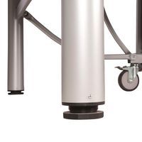 - Piétement : tube métallique de 80 mm de diamètre soudé au tube plat et ovale, réglable en hauteur.