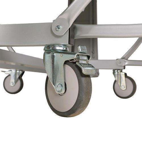 - Roues : 4 roues directrices 125 mm avec bandage, deux avec fixations.