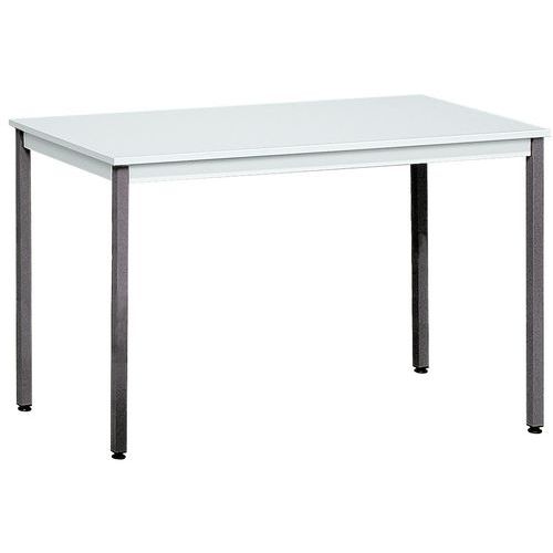 - Table polyvalente avec plateau mélaminé et piètements en métal.