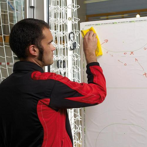 Il suffit de faire adhérer la feuille sur le support et lisser. Plus besoin de valise, de lourd tableau ou même de feuilles de papier et dadhésif, avec les feutres non permanents Taktistick, les inscriptions peuvent être facilement effacées comme sur un tableau.