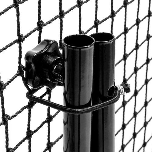 - Muni d'un cadre en acier avec filet en nylon fixé par sandows.
