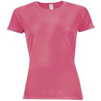 Tee-shirt femme avec manches raglan, pour plus de confort, de couleur rose fluo, idéal pour le quotidien...