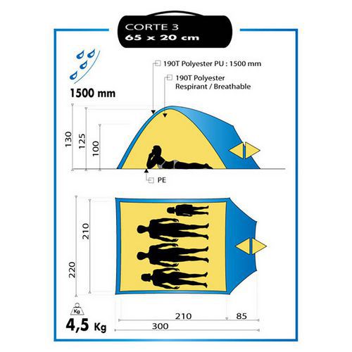 | Intitulé du produit | Tente de camping Corte 3-4 places Wilsa, Coloris: Gris, Matériau: Polyester, Hauteur: 1300 mm |