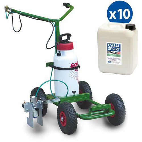 | Intitulé du produit | Traceuse pulvérisation + 10 bidons de Tracyl Pro, Emballage recyclable: Oui - 100 %, Emballage recyclé: 10 % |