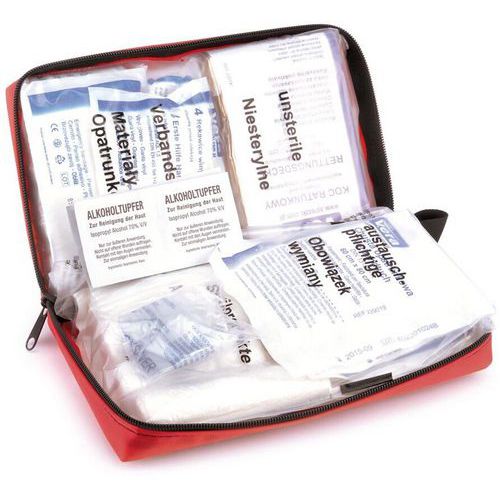 | Intitulé du produit | Trousse de secours collectivités, Coloris: Rouge, Contenance: 21,5 x 13 x 5,5 cm, Largeur: 55 mm |