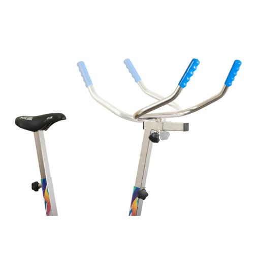 Vélo d'aquabike français pour la pratique du cardio-training en piscine. Construit pour un usage journalier intensif en collectivités, notamment dans les piscines municipales, les clubs et les kinésithérapeutes.