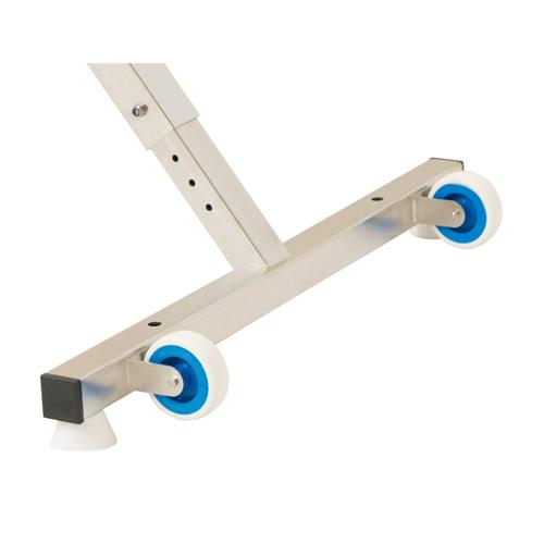Piètements télescopiques réglables, permettant d'horizontaliser le vélo en fonction de la pente du bassin