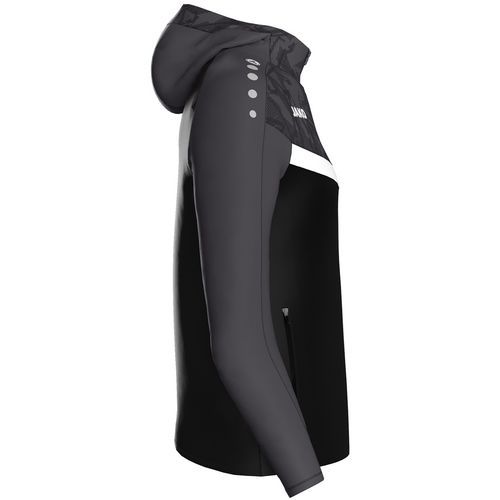Veste à capuche femme Iconic Jako Insertion jacquard Poches latérales avec fermeture éclair Les fibres microfines évacuent directement l'humidité à la surface du tissu Le matériau sèche très rapidement, protège du refroidissement et préserve une agréable sensation corporelle pendant le sport Coloris : noir Garantie client : 1 an Personnalisable