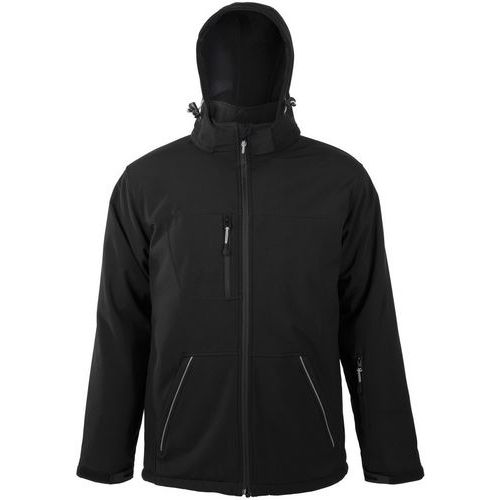 Veste parka sofshell expert, de couleur noire, idéale pour les périodes de mauvais temps.