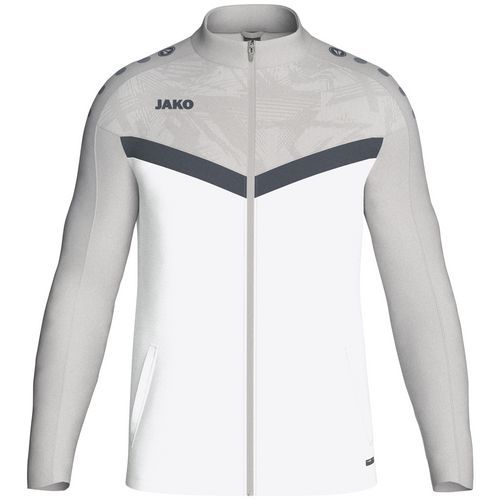 Veste de survêtement polyester enfant Iconic Jako Insertion jacquard Poches latérales à fermeture éclair Coloris : blanc/gris