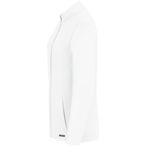 Veste de survêtement Pro Casual Jako Fermeture éclair avec marquage JAKO Poches latérale avec fermeture éclair invisible Poches latérales Les fibres microfines évacuent directement l'humidité à la surface du tissu Le matériau sèche très rapidement, protège du refroidissement et préserve une agréable sensation corporelle pendant le sport Coloris : blanc